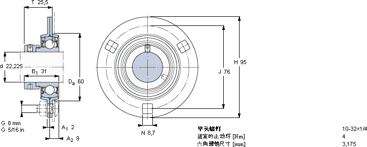 • 内径(d):22.2250